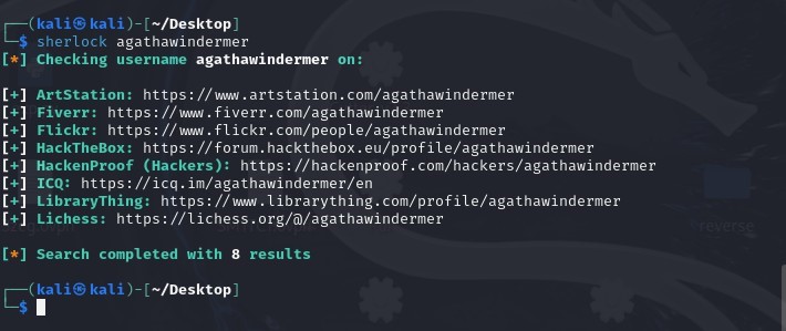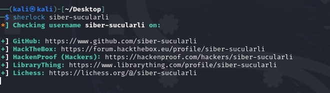 Daha kapsamlı bir araştırma gerektiğini fark ederek, Sherlock aracını devreye soktum. Sherlock, sosyal medya hesaplarını bulmada etkili bir araçtır ve bu durumda da bana yardımcı oldu.