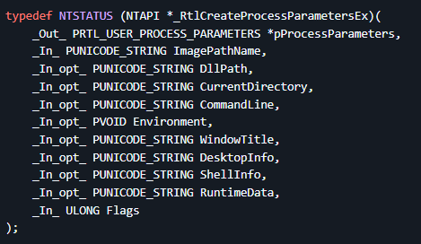 NT API: RtlCreateProcessParametersEx() – Sürecin parametrelerini oluşturur.