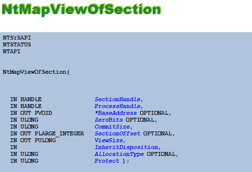 NT API: NtCreateSection() – Bellek içinde yeni bir yürütülebilir bölüm oluşturur.