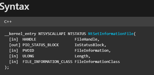 Kullanılan bilgi sınıfı: FileDispositionInformation