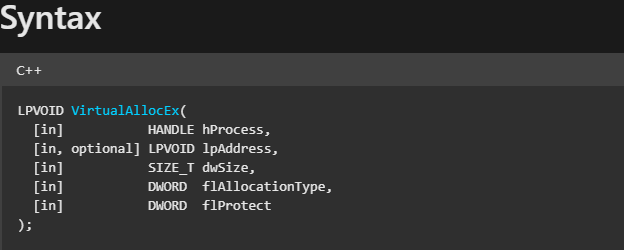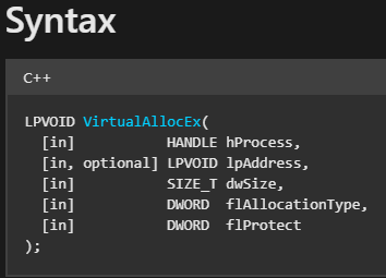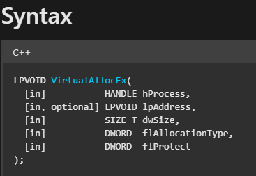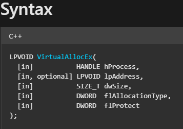 Win32 API: VirtualAllocEx() – Hedef sürecin belleğinde yeni bir alan ayırır.